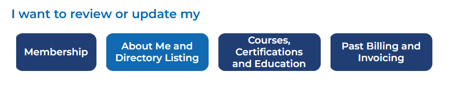 Clicking this pencil should redirect you to your main ACLM profile page where you can make any edits under the "About Me and Directory Listing" box: