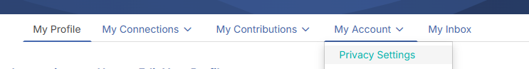 Once in your profile, then select My Account tab and choose Privacy Settings from the drop-down menu: