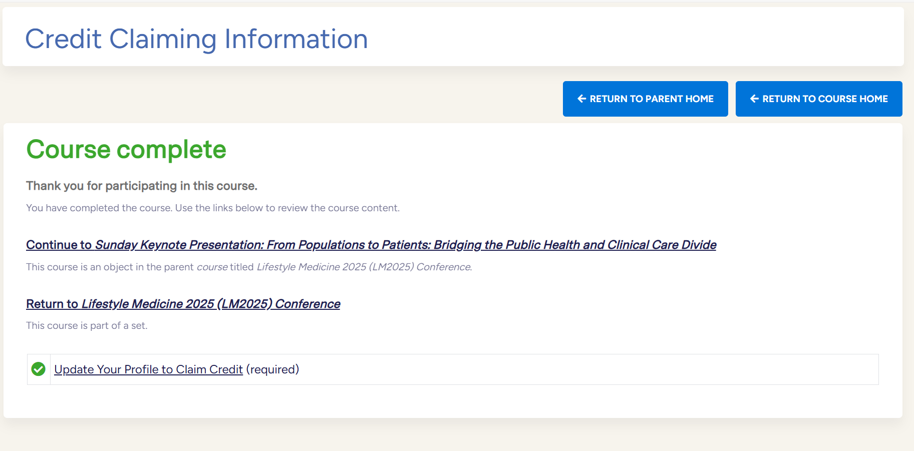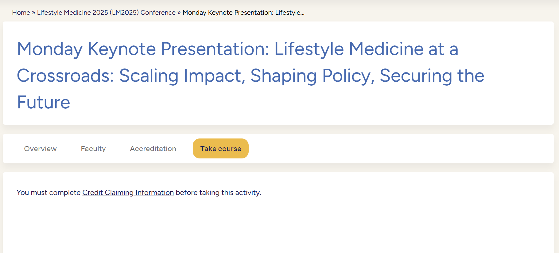 Alternatively, you can login directly to the Learning Center at https://learning.lifestylemedicine.org/