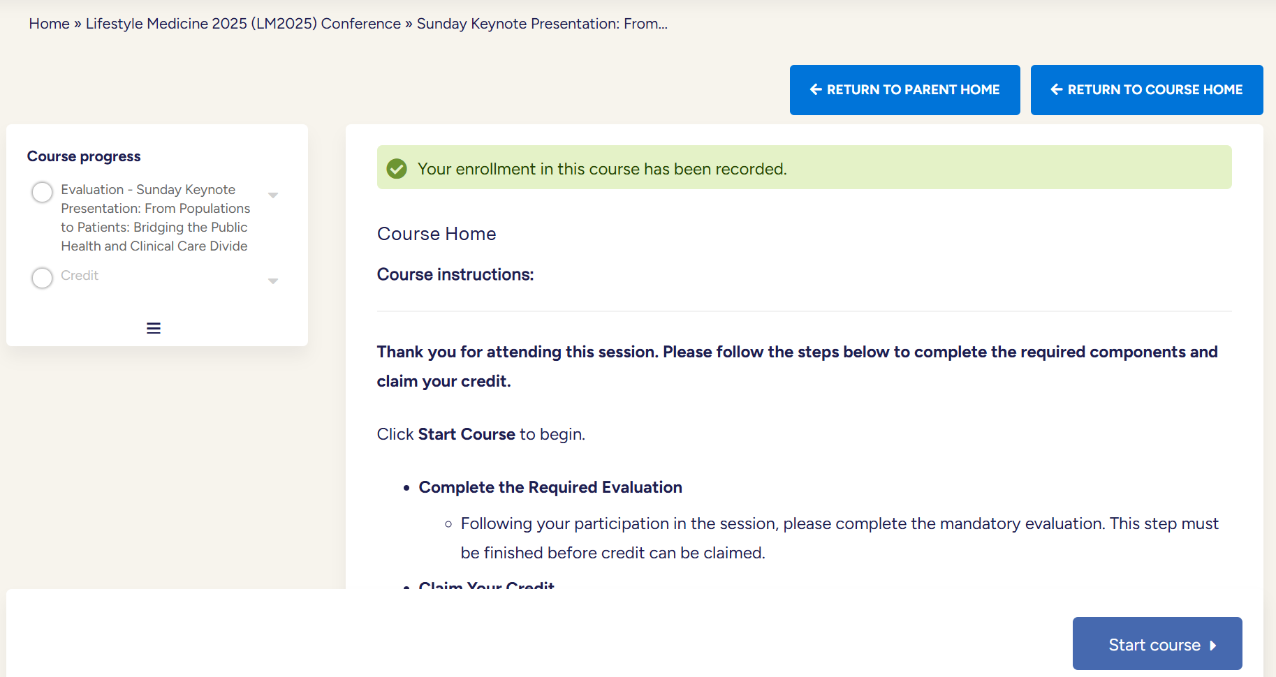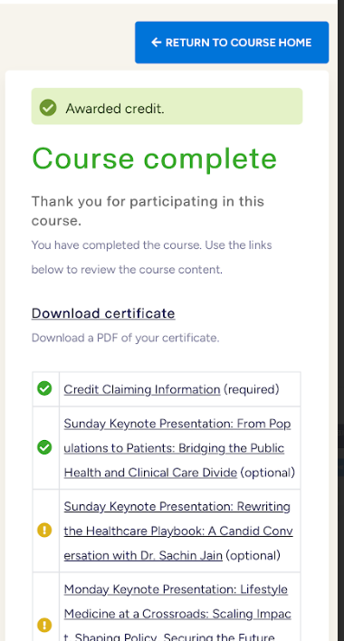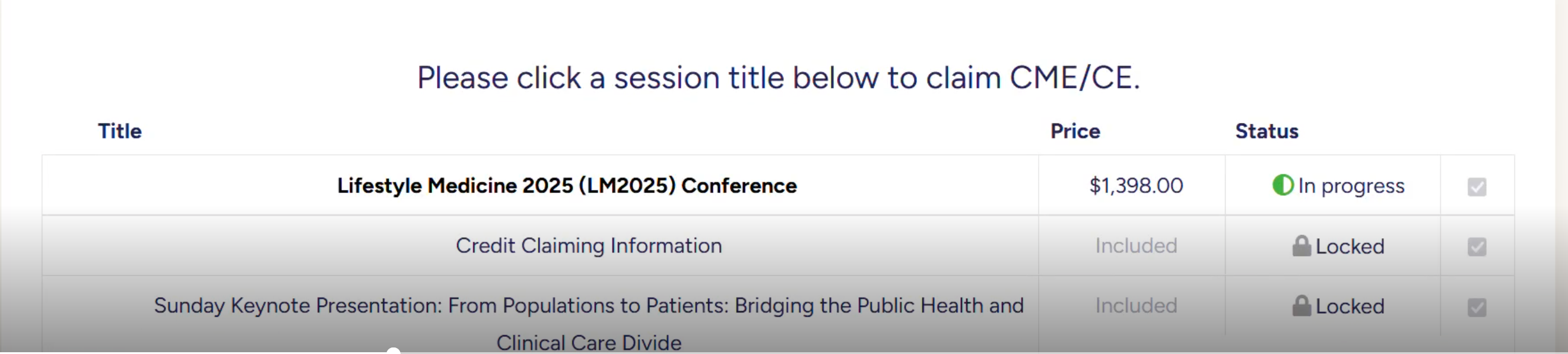 After completing these, you will see that you are Enrolled into each session that is available for CME like the photo below:
