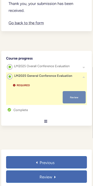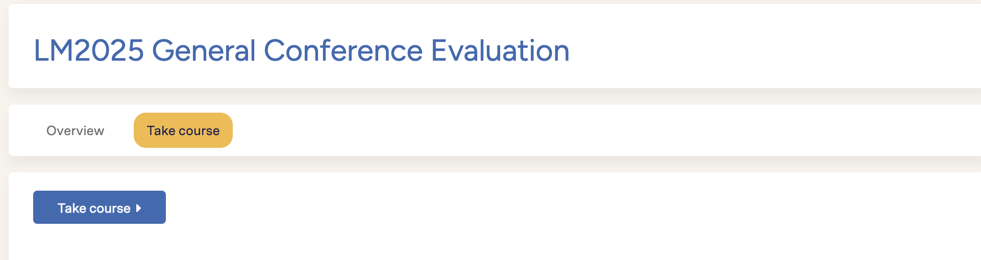 Once you have evaluated ALL the sessions you wish to receive credit for, click on the LM2025 General Conference Evaluation at the bottom of the list.
