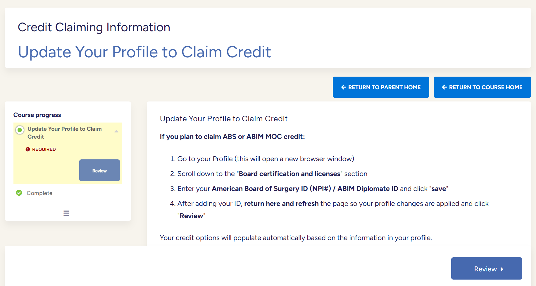 Ensure your profile includes all required information so your credits can be reported correctly.
