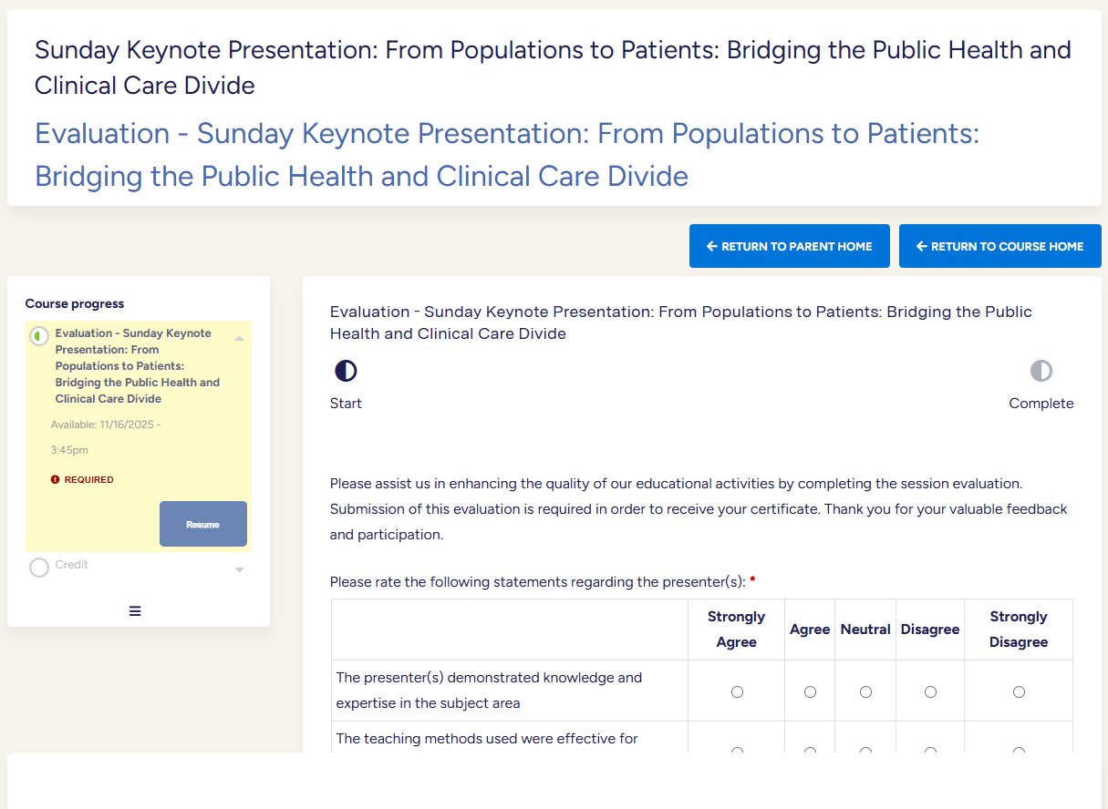 ** If you see "enrollments are closed" and a white screen, please fill out this form LM2025 CME/CE Issue Submission Form