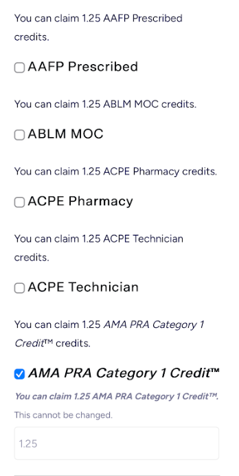 Select your credit type(s) that you wish to claim and then select "Submit":